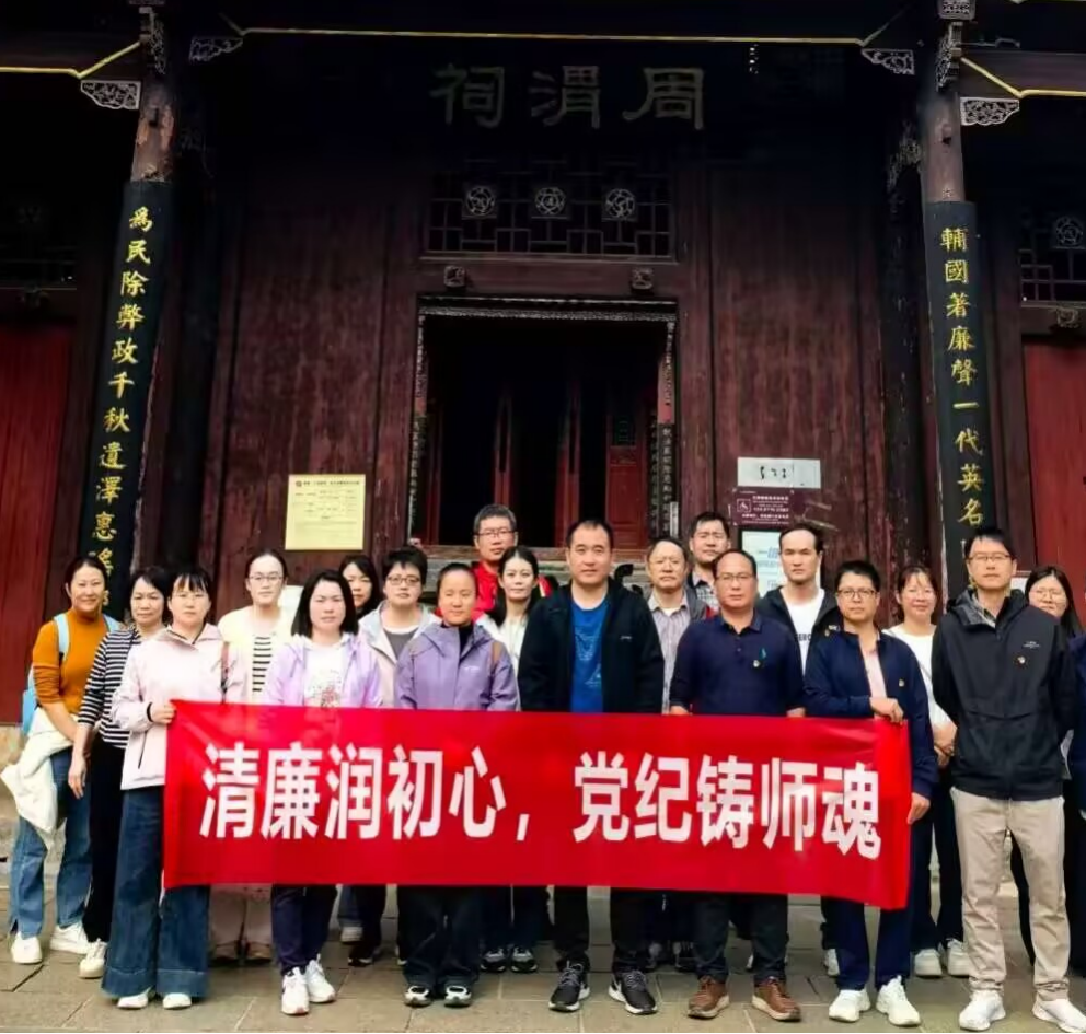 在广西党风廉政教育基地——周渭祠,开展“清廉润初心,党纪铸师魂”主题活动。全体人员深入学习北宋监察御史周渭生平经历及廉洁公正、勤政爱民的故事,现场参观“反腐倡廉”警示教育图片展。